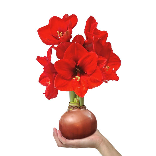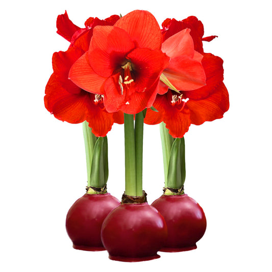 Crimson Red Waxed Amaryllis Bulb with red blooms