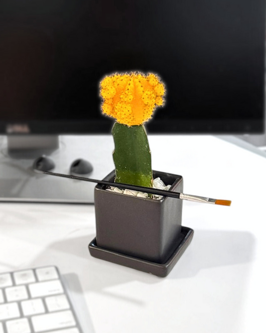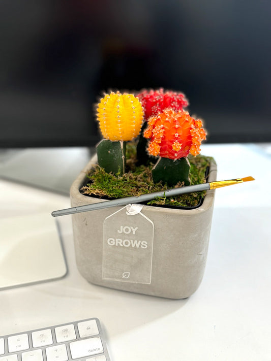 Colorful Moon Cactus Desktop Plant in black ceramic planter
