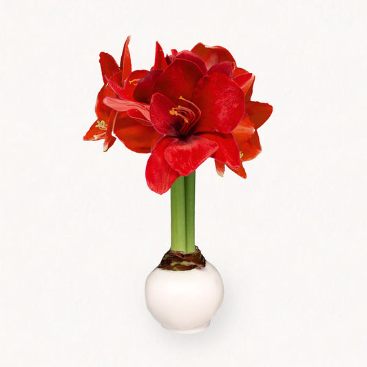 White Alfresco Hand-Planted Amaryllis Bulb with voluminous, white blooms