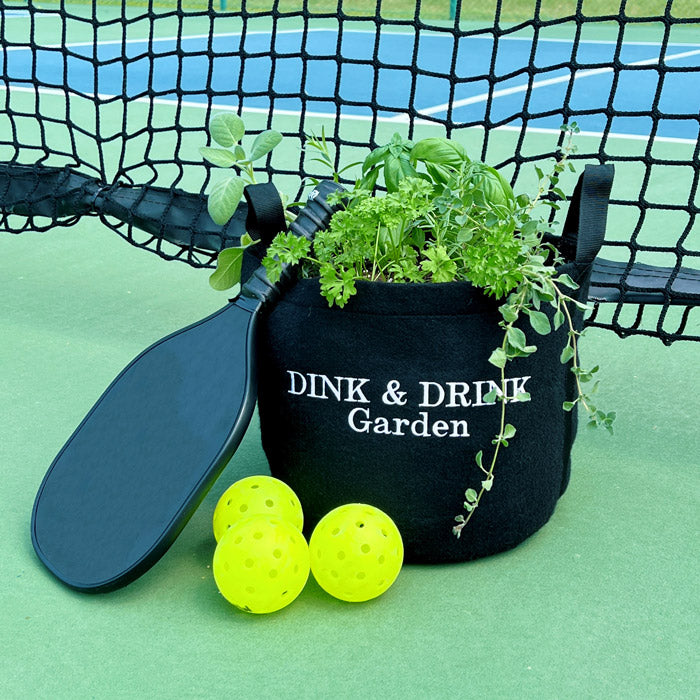 with seasonal herbsThe perfect gift for your favorite pickler, the Dink & Drink Garden will serve up some fresh flavor for any beverage or bite. Take this portable container garden with you from the patio to Pickledome. With seasonal herbs and a signature cocktail recipe card, the Dink & Drink Garden will bring the pre-gaming and post-gaming fun to every Pickleball match!