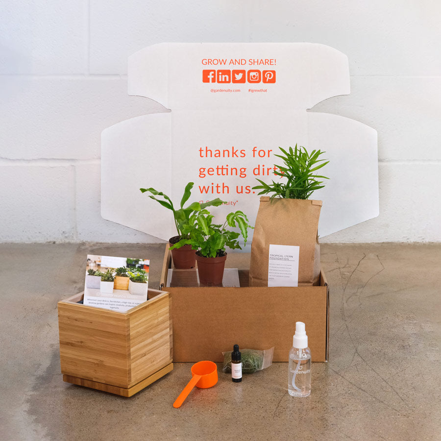Your Tropical Desktop Garden comes as a kit with step-by-step instructions and everything you need to care for your plants. As you build your indoor garden, enjoy getting a little dirty in the soil while you build your indoor tropical oasis! Everything in the desktop garden kit is designed with you in mind and customized to the needs of your plants.