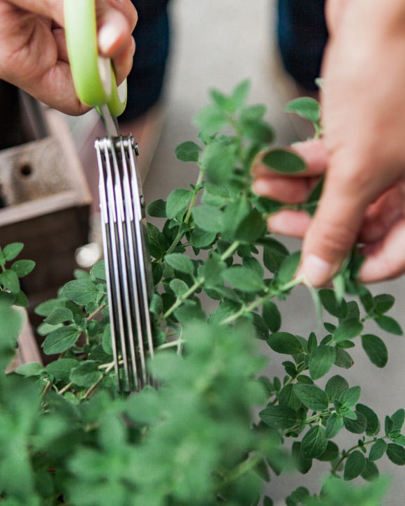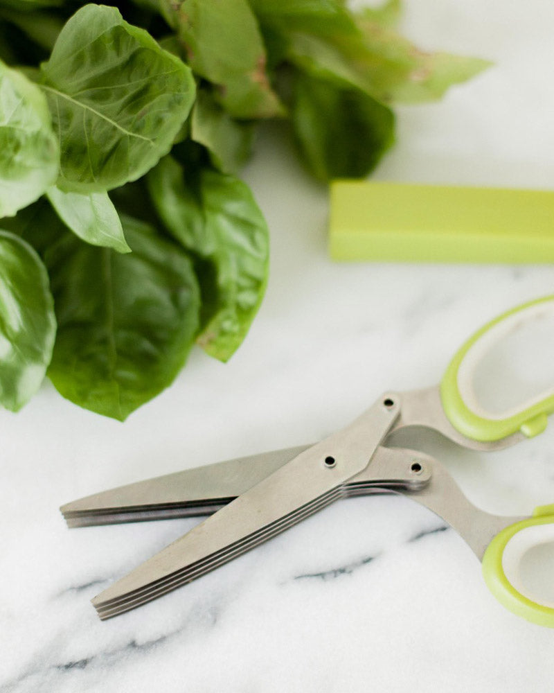 Snip your favorite herbs quickly, neatly, and right where you want with our Mincing Scissors. Designed with a set of five sharp 3" stainless steel blades, this tool allows you to cut, chop, or mince herbs directly into a pan or over a plate for garnishing.