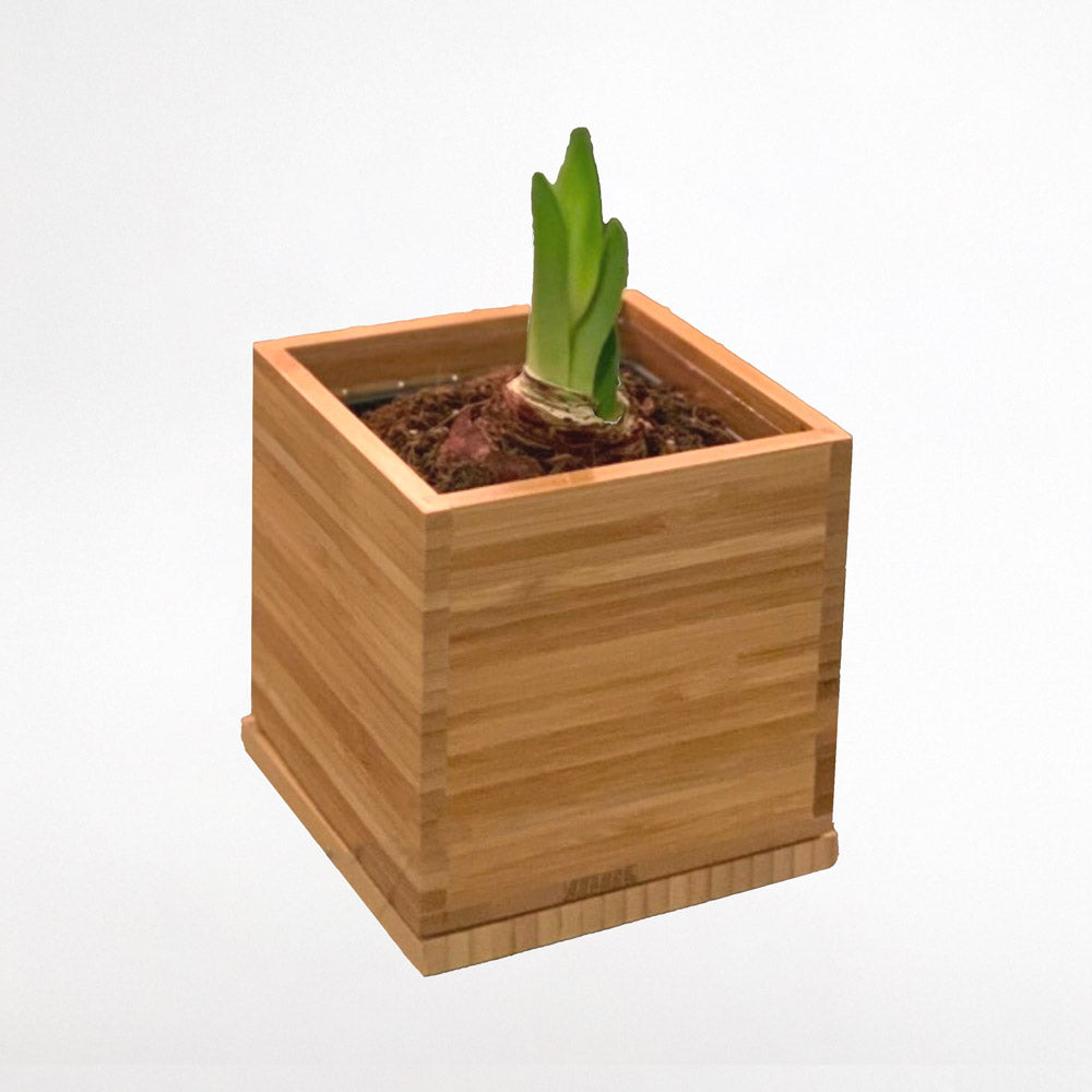 Bamboo or Concrete Planter – Our signature reusable planter box made of sustainably sourced bamboo (includes planter liner and saucer tray), or an organic modern grey pot with a brushed cement finish (includes planter liner and drainage hole). Both planters measure approximately 5” x 5” x 5”.