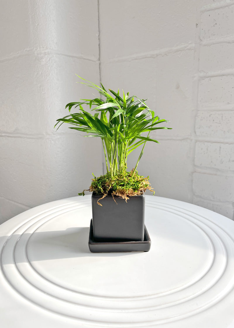 Perfectly planted in a small ceramic planter, the Tropical Nano brings a little touch of nature to any indoor space. The mini tropical plant comes fully planted in customized soil and works in low light, making it an ideal way to add some fresh foliage to any home or office. This desktop plant is smaller than a cup of coffee and our cutest little indoor accessory!