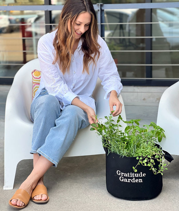 The scent and beauty of a Gratitude Garden will add ambiance to your patio, porch, fire escape, or balcony. As the seasons change, so do the fresh herb choices. Knowing you don't have to have a sprawling backyard, spacious garden beds, or loads of time to enjoy the many benefits that fresh herbs bring to your world makes the experience even better.