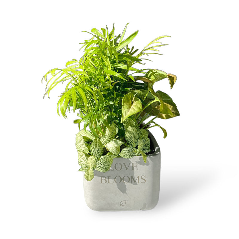 This limited edition Love Blooms Tropical Desktop Garden makes a thoughtful gift for that special someone. Whether your loved one places it on their desk at work or nightstand at home, this indoor garden will be a beautiful reminder of your love. Each kit includes a collection of tropical plants that will grow beautifully together, and each plant is unique in its coloring and variegation. This indoor garden works in low light, making it an ideal way to add some foliage to any home or office.