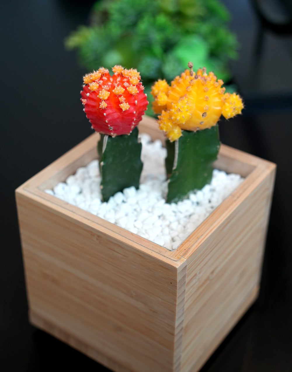 The Colorful Moon Cactus Desktop Garden is a kaleidoscope of vivid colors that can bring joy to anyone’s indoor space. This desktop garden comes carefully packaged for easy gifting—perfect for plant lovers or as a self-care treat!