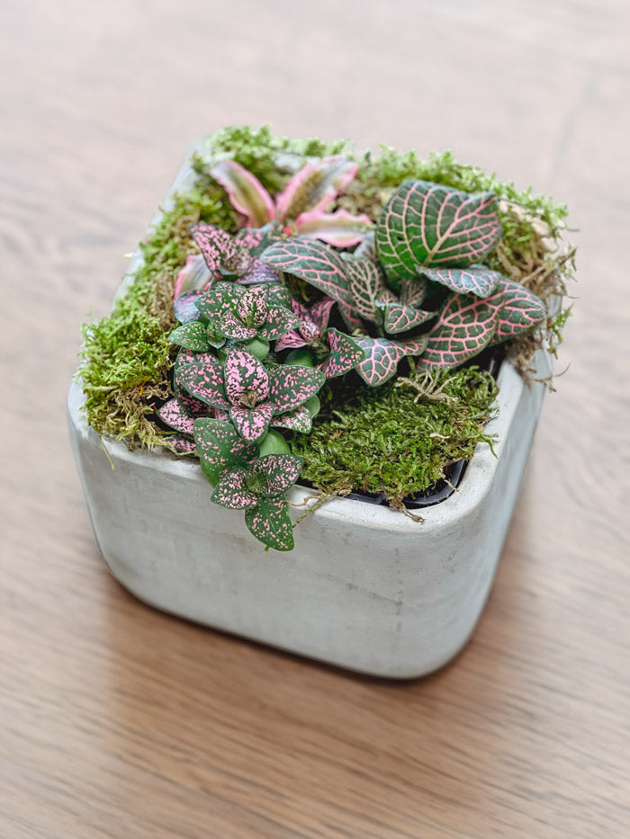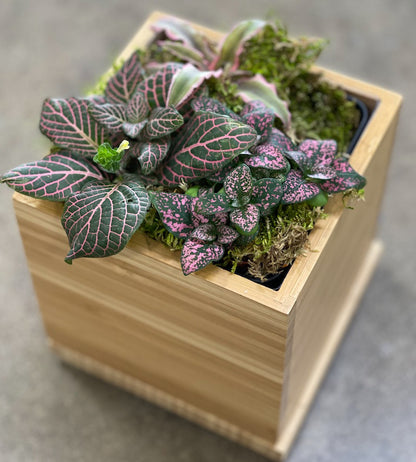 Our Pink Tropical Desktop Garden can evoke a genuine sense of happiness and contentment. The color pink comes through in the tropical plant collection and carries a multitude of positive connotations such as warmth, playfulness, and serenity. So when the pink hues of the tropical plants combine with the beauty and tranquility of a desktop garden, it creates an environment that can bring joy to our every day.