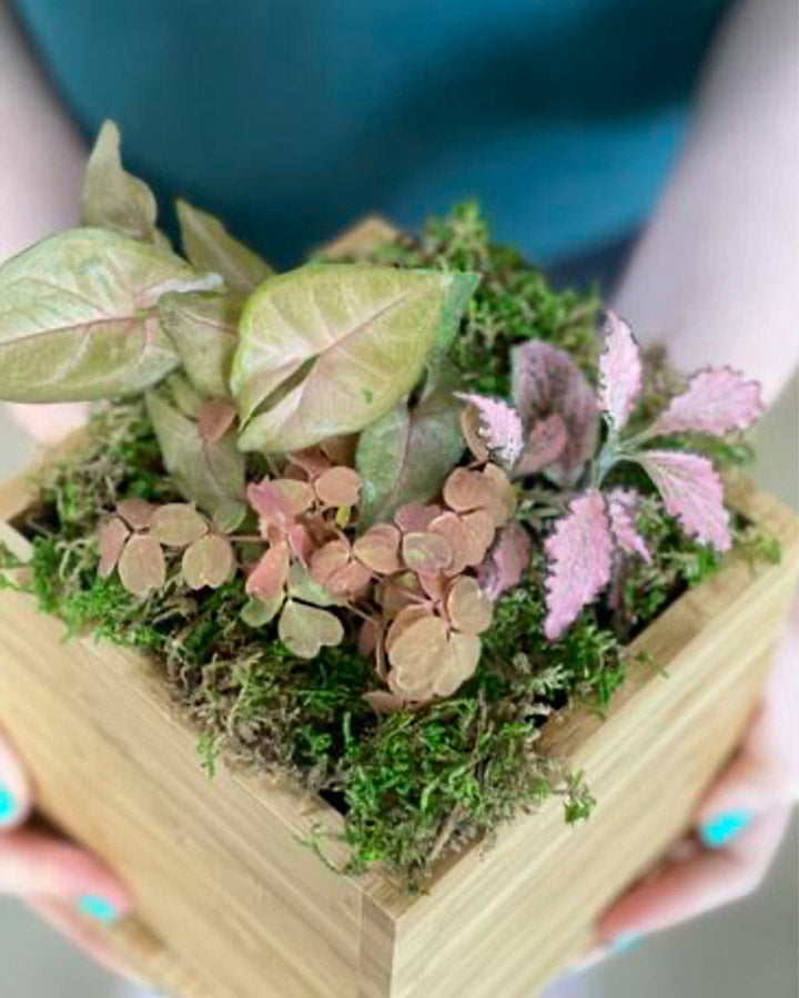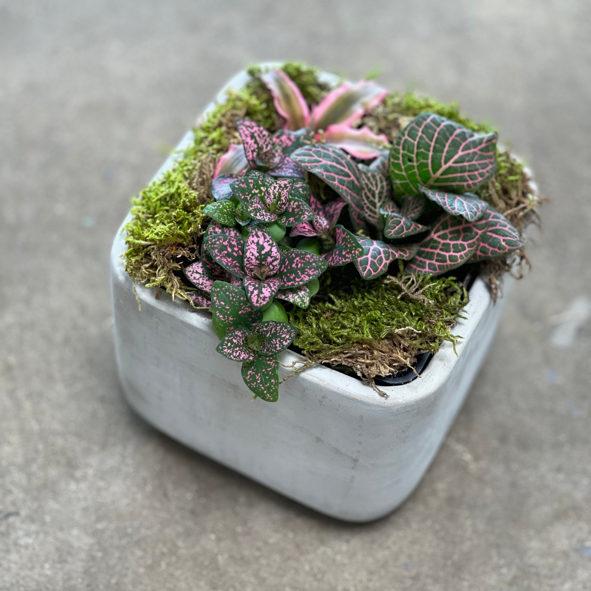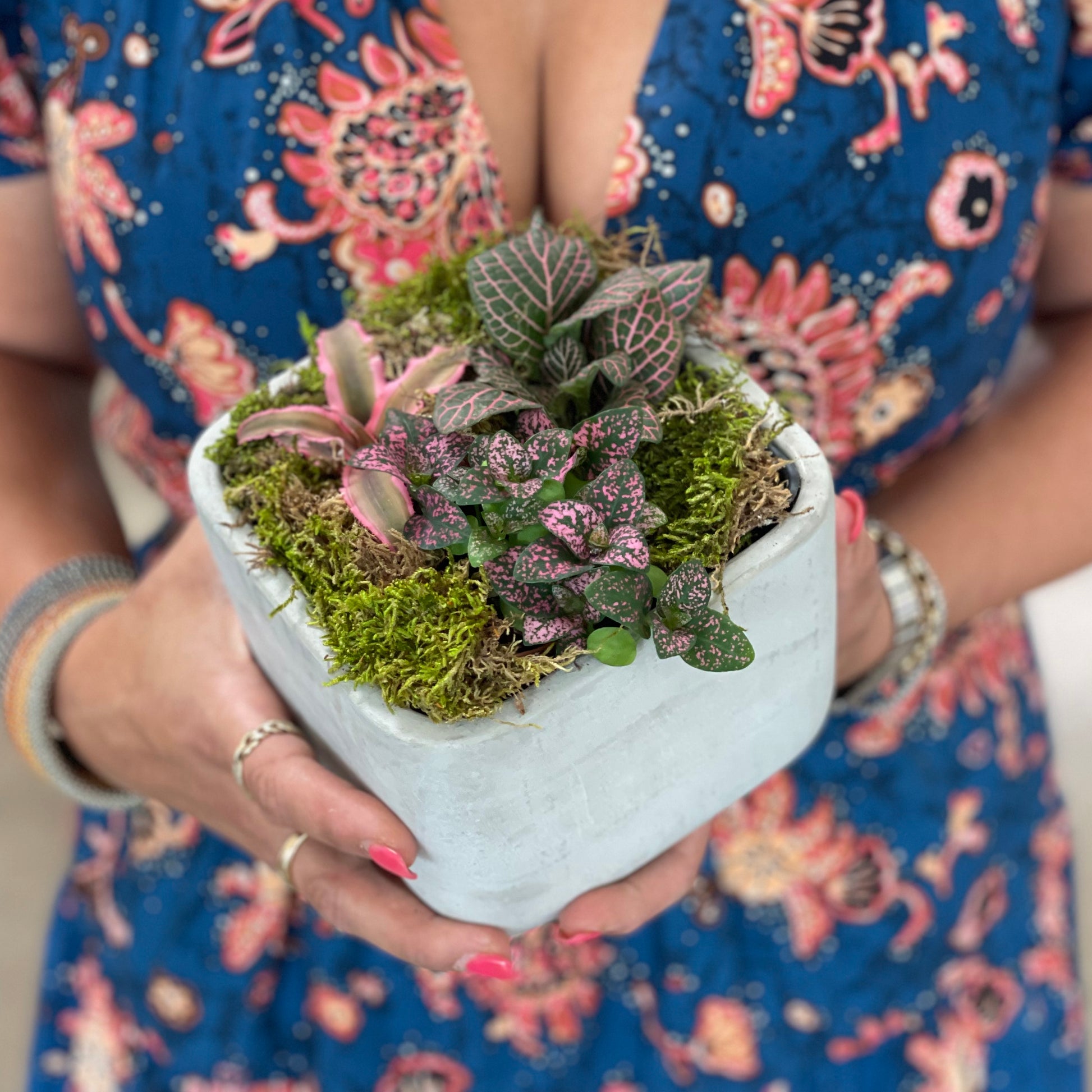 The Pink Tropical Desktop Garden is a lovely and colorful accessory for any indoor space! Each kit includes a collection of tropical plants that all have a hint of pink, which elicits the feelings of tranquility, positivity, and warmth. This indoor garden works in low light, making it an ideal way to add some color and nature to any home or office.