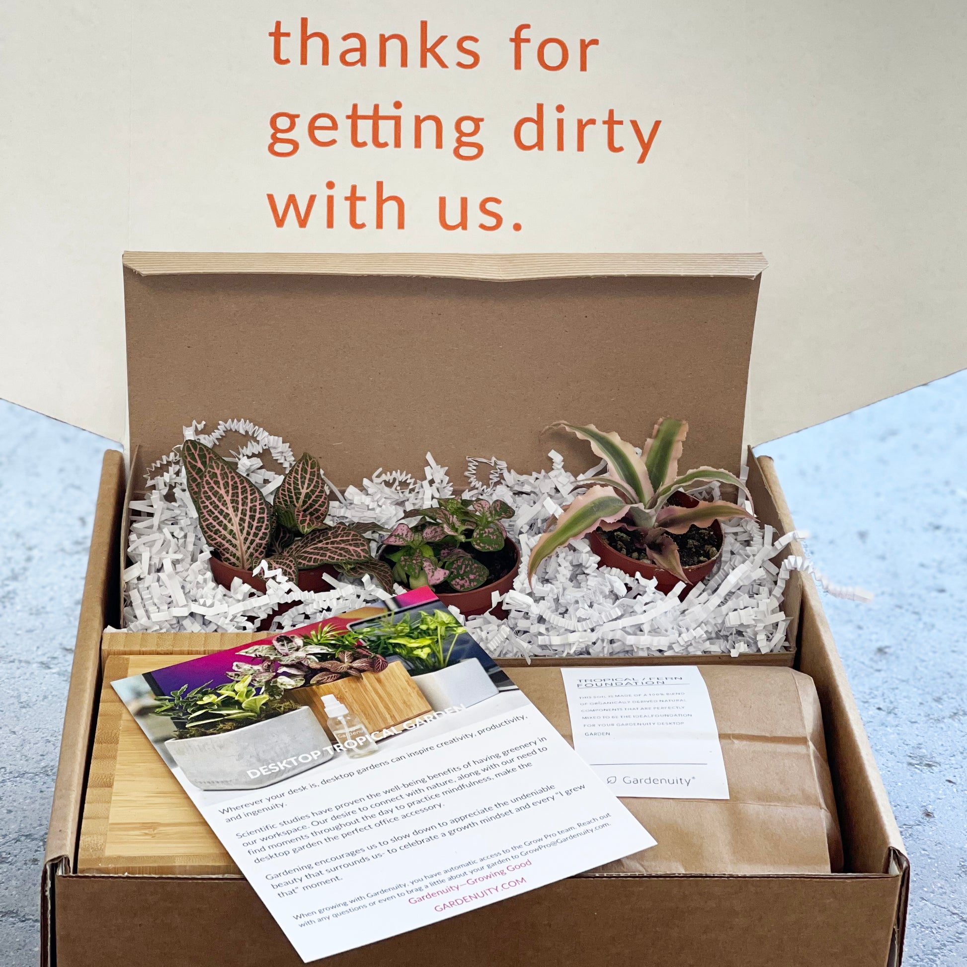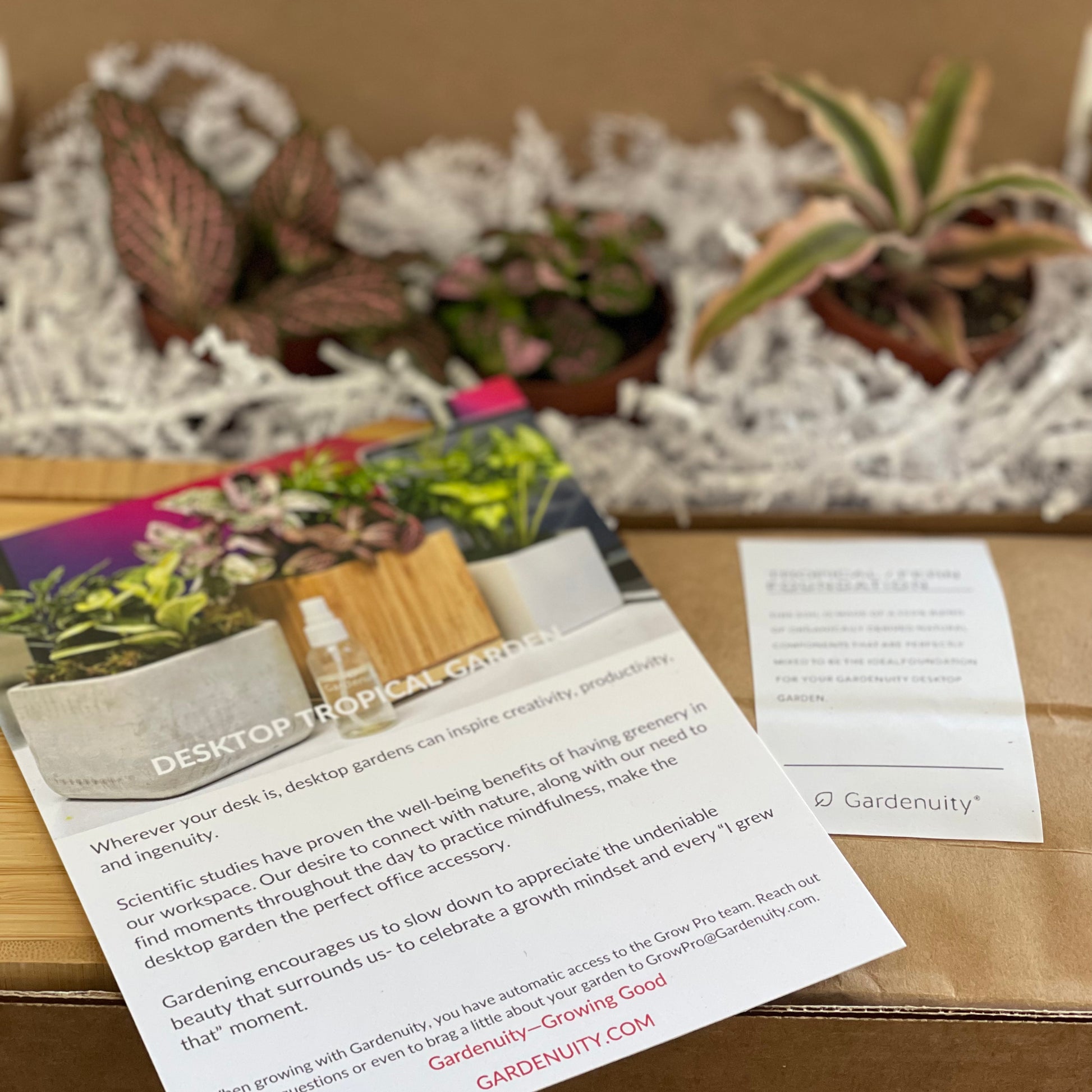 Your Pink Tropical Desktop Garden comes as a kit with step-by-step instructions and everything you need to care for your tropical plants. Everything in the garden kit is designed with you in mind and customized to the needs of your plants.